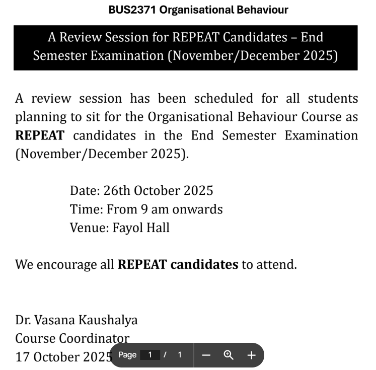 Notice - BUS 2371 Organisational Behaviour by LMS Administrator - Friday, 24 October 2025, 9:34 AM Number of replies: 0 Permalink